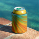 Abstract red yellow orange green stripes on blue can cooler