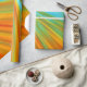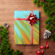 Abstract red yellow orange green stripes on blue wrapping paper