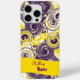 This colourful case is adorned with purple, yellow, and white spiral. Fill in the template field with your information or click customize it! to change the font style, size, and colour.