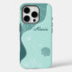 This iPhone case has a lovely abstract design of scallop shells in teal and white. White line drawings of seaweeds, with wavy teal borders complete the artwork. Very simple design, and perfect for anyone who loves the beach and the sea.