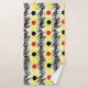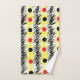 Abstract Scribble Polka Dot Pattern Bath Towel Set designed by Nisha Prabhu CuteHomeGifts. Colourful abstract pattern featuring black vertical stripe scribble and black red colour polka dot on yellow background.