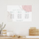 Modern pastel abstract shapes in soft pink and cream with wavy lines decorate the top right and bottom left, with elegant simplistic typography for this seating chart. Suitable for a small wedding group of 30 guests with three tables of ten. Easily personalise with your guests' names and you can change the table numbers to your own words if preferred. Try to keep to a similar number of characters, but if you do slip over to another line, you can make the text smaller via the scale down option via the Customize further option. You can also choose this If you wish to change font styles and colours.