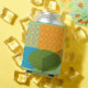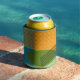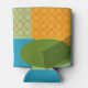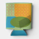 This can cooler has a mid-century modern design of a rectangle, an oval, and a parallelogram with empty circle and parallel lines overlapping them. Want different colours? Message me.