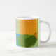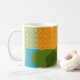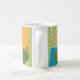 This mug has a mid-century modern design of a rectangle, an oval, and a parallelogram with empty circle and parallel lines overlapping them. Want different colours? Message me.