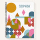 Take notes in style with this Abstract Landscape Shapes Collage in Bright Colours Notebook featuring a fun geometric design in shades of teal blue, pink, red, and mustard yellow with room at the top to personalize the design with your name.