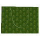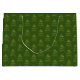 This pretty, abstract drawing of a Christmas tree in sparkling gold simulated foil is an elegant expression of the holidays on this beautiful gift bag. The simple design is a spiralling shiny gold curlicue on a forest green background, in a pine tree shape, with tiny stars sprinkled on its "boughs." Then the tree design is repeated into a dazzling pattern.