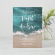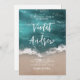 Romantic coastal themed wedding invitation features beautiful moody abstract watercolor sparkling ocean wave and beach background, toped with stylish script and elegant font event details, modern and simple, great for sand beach wedding, tropical destination wedding, coastal ocean themed wedding.