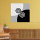 Abstract art with spiral circle geometric shapes on black grey and white. Spirals symbolize the sacred cosmic energy present in everything. The double spiral represents balance and creativity. And it is at the core of life as DNA composed of double helix!