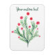 Pretty floral personalized magnet with an ink and watercolor drawing of an abstract spring plant in pink and green over customizable white background and customizable text.