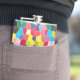 A stained glass design in fun, bright, candy hues. Enjoy all colours of the rainbow: red, orange, yellow, green, blue, indigo and violet. Add your name or initials on the light pink ribbon for a unique, customized, mosaic gift.