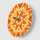 Clock in a geometric abstract star pattern In candle flame colours of soft orange and mustard gold, accented with white