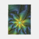 Abstract Star, Shiny Blue Green Golden Fractal Art Fleece Blanket
