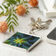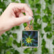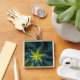 Abstract Star, Shiny Blue Green Golden Fractal Art Keychain