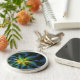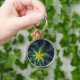 Abstract Star, Shiny Blue Green Golden Fractal Art Keychain