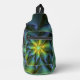 Abstract Star, Shiny Blue Green Golden Fractal Art Sling Bag