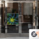 Abstract Star, Shiny Blue Green Golden Fractal Art Window Cling