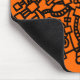 A mouse pad with an quirky hand drawn abstract surreal design, a network of shapes link together with wire like shapes which looks both natural and machine like.