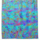 Shades of blue, purple, pink, orange, lime green, black, red and more are woven through this abstract. While there's a lot of colour and motion, the grid-like pattern gives this the look of a modern quilt.
