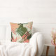Abstract Summer palm tree pattern, throw pillow. Pastel shades of green, peach, pink and beige.