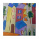 On a hot summer day, what could be better than exploring a beautiful village full of interesting buildings painted in vivid pastel shades? In this abstract watercolor, let the fun, quirky houses, trees and painted roofs fire your wanderlust and fill your home with a burst of color.