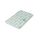 Abstract sky scene with clouds and sunshine shining through personalized bath mat. This lovely design conveys a peaceful and cheerful scene, reminiscent of sunny skies with floating clouds. Abstract clouds are curved, semi-circular lines in varying shades of blue, while the suns are placed within the curves of the clouds, creating the impression of a sunrise or sunset. The colours used are soft and harmonious, combining cool blues for the clouds with warm yellows and oranges for the sun, evoking a serene and balanced atmosphere. Designed abstract nature allows for a modern and stylish interpretation of a natural landscape.