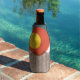 This bottle cooler has a mid-century modern design of horizontal wavy lines with two circles and two horizontal broad stripes. Want different colours? Message me.