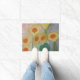On a sunny summer day take a walk through the cottage garden and you will see cheerful yellow sunflowers dancing in the warm breeze. With vivid yellow petals set around orange centers and rich green stems and leaves against a neutral background, this is a wonderful summer floral design. Choose these gorgeous abstract sunflowers and enjoy the summer sunshine every day of the year.
