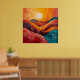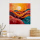 Immerse yourself in the abstract splendour of Abstract Sunset, a vibrant art print where a glowing sun illuminates a dynamic, wavy horizon of bold colours. Vivid orange, red, and blue waves blend in a cascade of energy and movement, showcasing expressive textures and fluid forms. This modern piece brings a burst of warmth and creativity to any space—perfect for contemporary interiors, art lovers, and those drawn to bold, emotional landscapes.