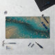 Elevate your workspace with this Abstract Teal and Gold Particle Wave Desk Mat, a perfect blend of elegance and functionality. Featuring flowing teal waves dotted with soft golden particles, this artistic mouse pad brings a sense of calm and creativity to any desk setup. Ideal for gamers, professionals, or home office aesthetics, this extra-large desk mat provides a smooth surface and eye-catching design that complements modern, boho, or glam office styles.