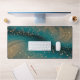 Abstract Teal and Gold Particle Wave Desk Mat