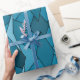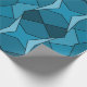 Inspired by stained glass, this stylish design contains abstract geometric shapes in various shades of blue-green teal outlined in black.