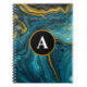 Abstract Teal Gold Watercolor Monogram Text Notebook
