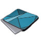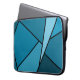 Inspired by stained glass, this stylish geometric design contains polygons in various shades of teal outlined in black. A pale blue-green triangle slashes in from the upper right with an array of progressively darker teal quadrangles and other shapes spiralling around it from light to dark. Two dark greenish-blue shapes ground the left side of the original design.