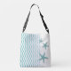 A beautiful seaside themed Tote with abstract teal "waves of surf" and Starfish laying along the surf edge. Design on both sides. Summery!