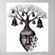 Abstract tree graphic art poster. Surreal pen ink drawing