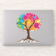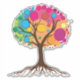 Abstract tree with roots and colourful leaves. Isolated on white background. Flat style.