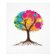 Abstract tree with roots and colourful leaves. Isolated on white background. Flat style.