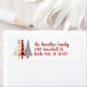 Festive holiday return address labels, done in white, with three abstract Christmas trees done in gold, red, and polka dot, on the left. Personalize the custom text to suit your holiday needs.
