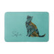 Abstract turquoise and gold pattern on this gorgeous cat lover bath mat.