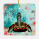 A hand drawn depiction of a turtle with an abstract background. Colours used: red, blue, teal, green, yellow, purple.
