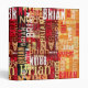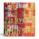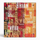 The dark-red and orange solid background forms the perfect canvas for the typography-inspired patterns. This rich backdrop enhances the contrast of the distressed fonts, creating a visually striking and balanced composition.