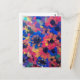 Abstract floral painting in red, blue and yellow tones in a vintage style.