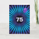 Purple, blue, and black vortex abstract design with a purple balloon for 75th birthday.