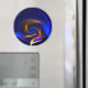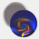 Vibrant colours abstract shape magnet, created as a fractal that looks like a twisted energetic vortex or swirl. It also may remind of an abstract fantasy flower with a spectacular corolla or it may inspire a cosmic rotation or unknown galaxy. The colours combination is based on shades that are not very commonly paired such as electric intense blue, orange, yellow and a smooth touch of purple.