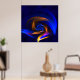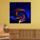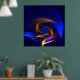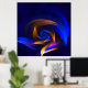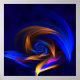 Vibrant colours abstract shape poster, created as a fractal that looks like a twisted energetic vortex or swirl. It also may remind of an abstract fantasy flower with a spectacular corolla or it may inspire a cosmic rotation or unknown galaxy. The colours combination is based on shades that are not very commonly paired such as electric intense blue, orange, yellow and a smooth touch of purple.
