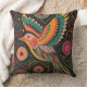 Abstract watercolor boho abstract bird dot art throw pillow