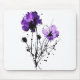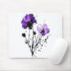 A vibrant and expressive abstract watercolor painting of two blooming flowers. The flowers are rendered in shades of purple and pink, with bold black outlines and splatters adding a dynamic and energetic feel. The overall composition is modern and contemporary.