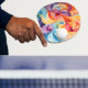 Swirls of orange, blue, purple, and gold cover this ping pong paddle in an abstract pattern resembling watercolor. Beautiful and bold!
