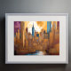 Abstract Watercolor Painting Gold Cityscape 4:3 Poster