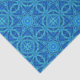 Tissue paper in a geometric, watercolor effect mandala pattern in shades of light to dark denim blue